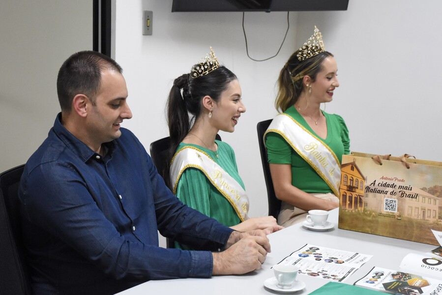 Na tarde de hoje, representantes municipais receberam a comitiva do evento, Rainha Ingrid Lodi Barison e Princesa Amanda Falavigna, acompanhadas pelo Secretário da Agricultura Sidnei Giubel.