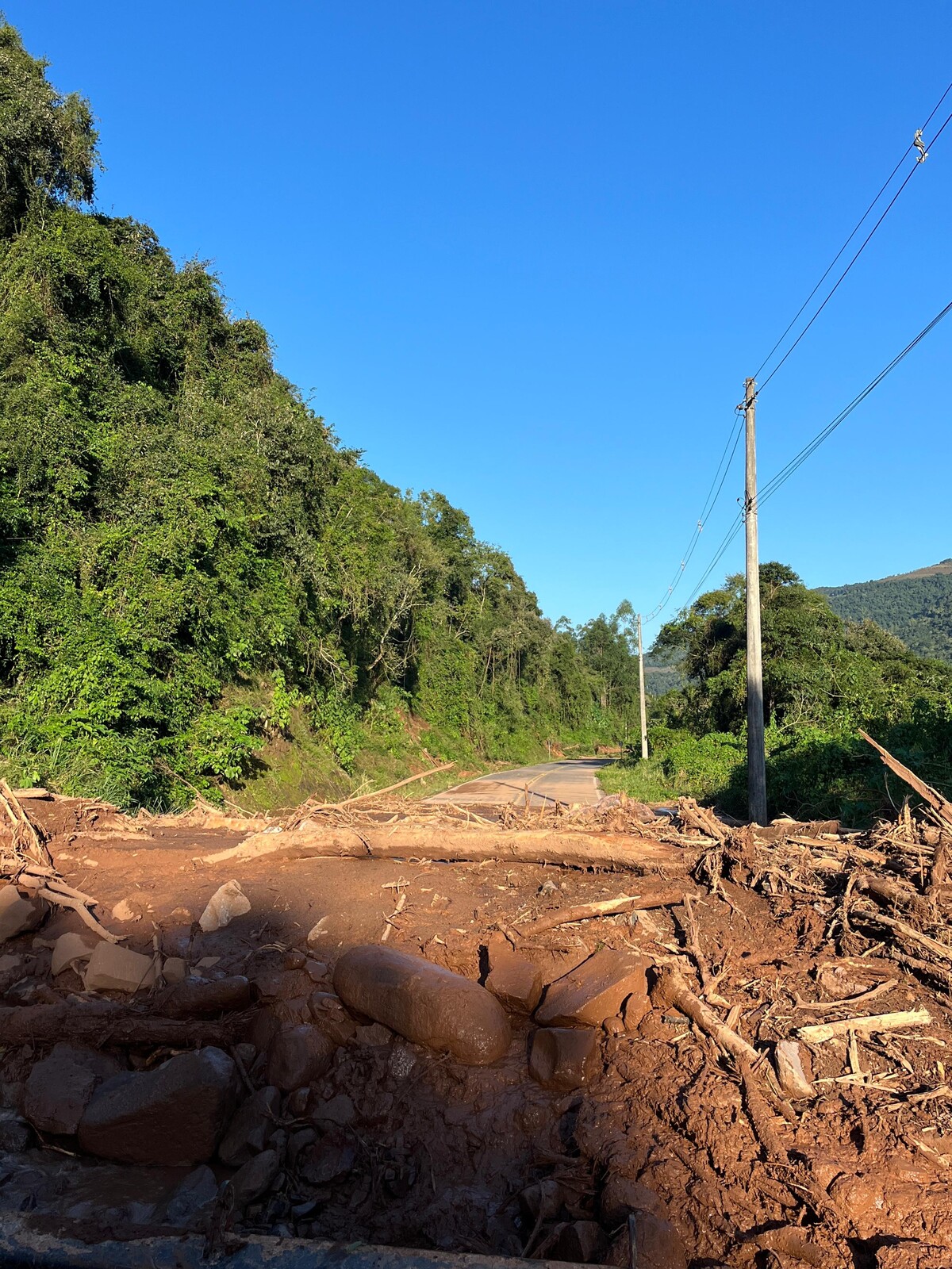 Uma das localidades que foi fortemente atingida pelos deslizamentos de terras foi a via que liga nosso município ao de Bento Gonçalves.