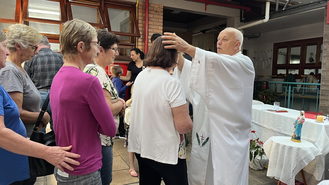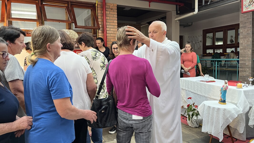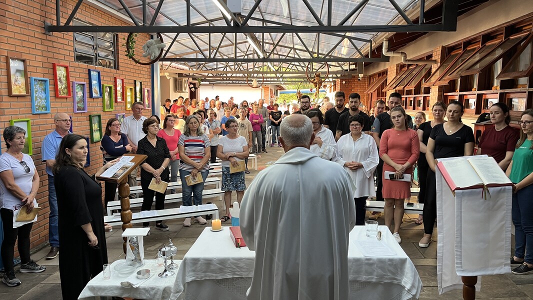 A celebração foi conduzida pelo nosso Pároco Padre Gilberto Lazarotto, junto ao Grupo de Canto e Liturgia, na Escola Municipal de Educação Infantil Amor e Carinho, local de abrigo da população que precisou sair de suas residências.