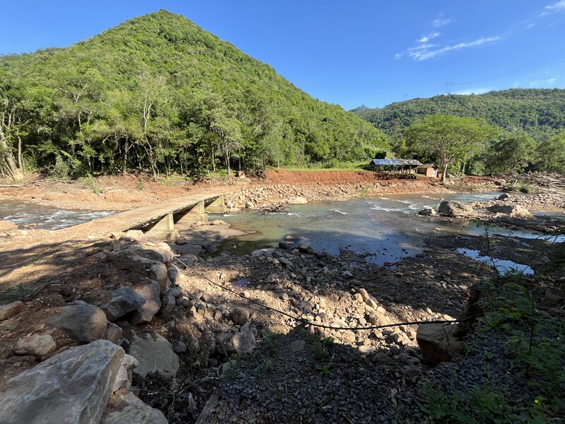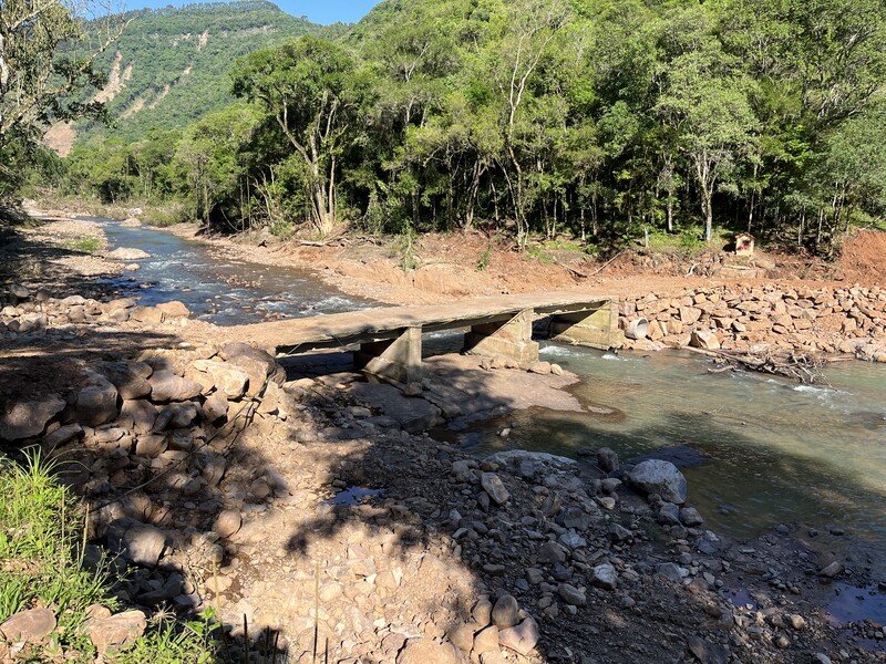 Após a enchente de maio de 2024, o local ficou irreconhecível, tendo sido levadas as cabeceiras da ponte e o salão da comunidade, bem como destruído todo o espaço de lazer e convivência ali anteriormente estabelecido.