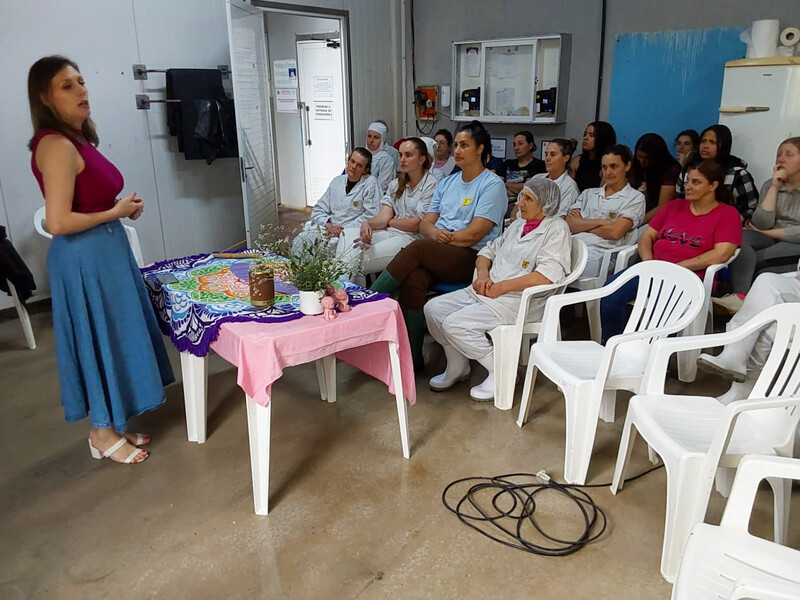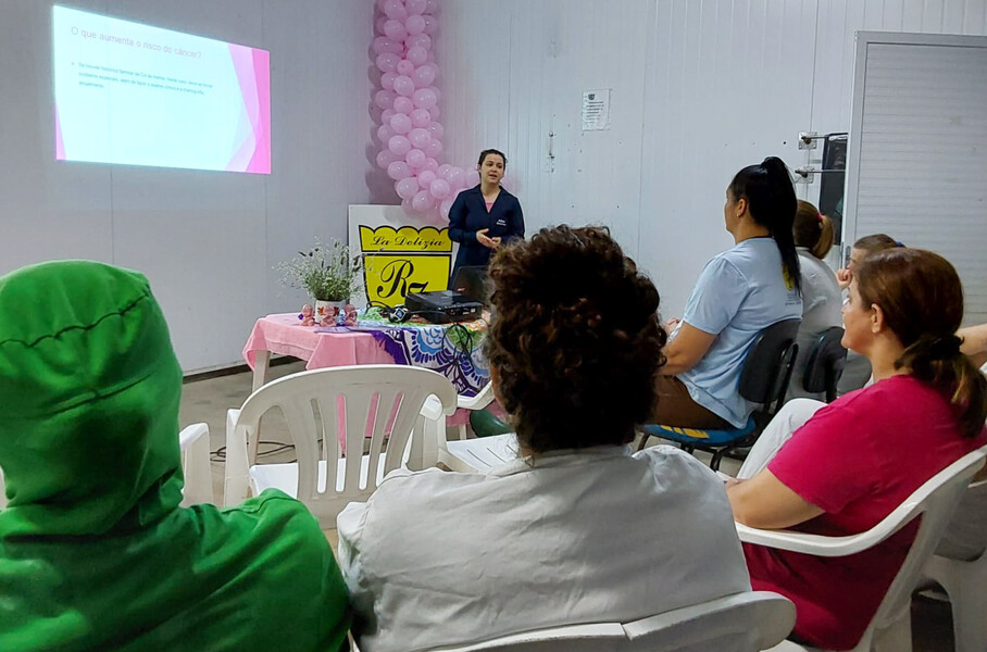 Para marcar a passagem do Outubro Rosa, no dia 24 de outubro, a Enfermeira Aline e a Terapeuta Holística Daniela estiveram presentes na Empresa RZ La Delizia para dialogar com as trabalhadoras sobre a importância da prevenção e da detecção precoce do câncer ginecológico, além de cuidados com a saúde mental.