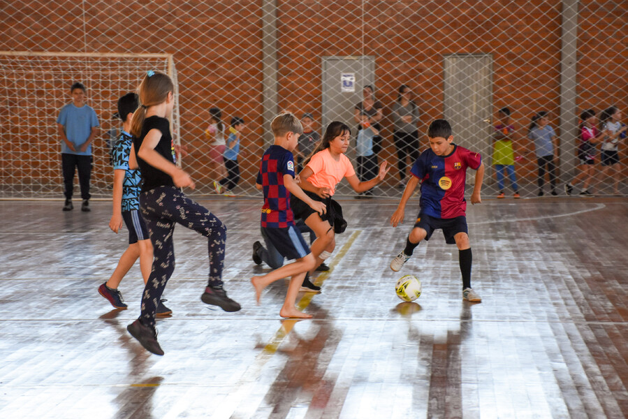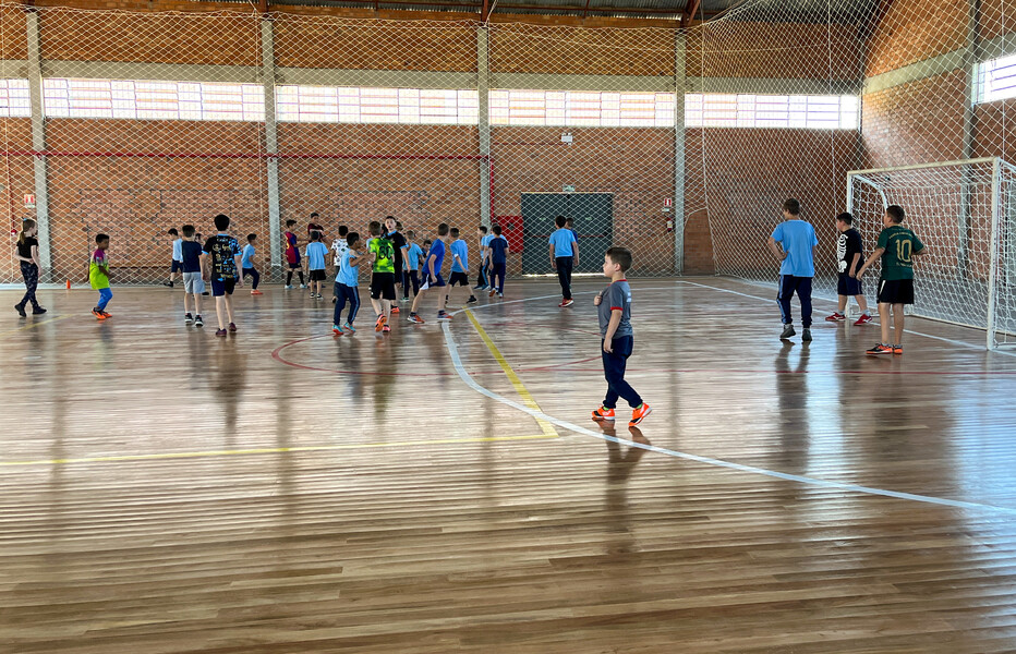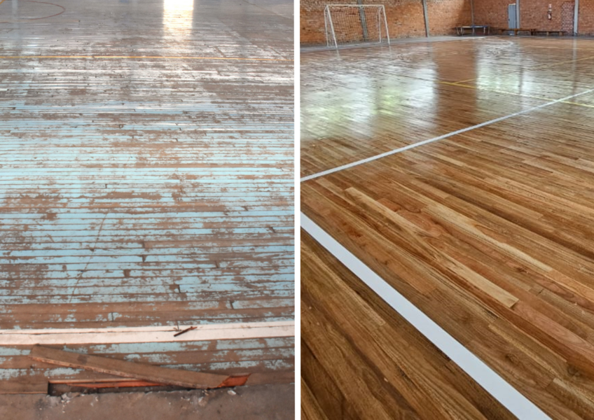 Neste espaço, as melhorias promovidas contemplam a drenagem, a impermeabilização, a substituição da madeira, o lixamento, a pintura do piso e a substituição das redes das goleiras e das redes de proteção laterais. Também, durante a Gestão 2021/2024, foi regularizado o PPCI do ginásio. Tudo isso, para proporcionar conforto e segurança a todos que utilizam o espaço.