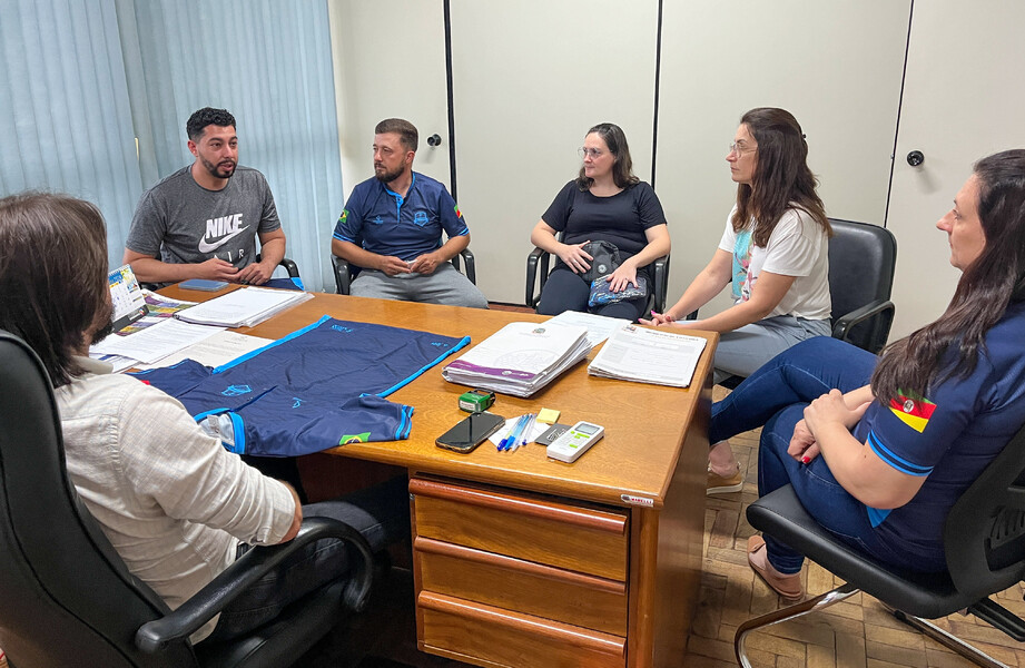 Na ocasião, entregaram camisetas personalizadas em forma de gratidão e foram recebidos pelo Prefeito Ivelton Mateus Zardo, pela Vice-prefeita Lenita Zanovello Tomazi, pela Secretária de Educação e Desporto Lilian Zechin e pelo Coordenador de Esportes Luis Guilherme da Costa.