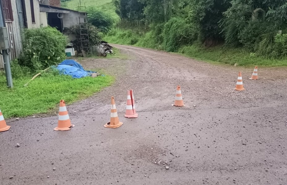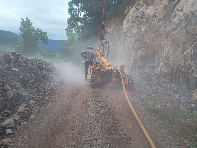 A partir desta manhã, o município de Cotiporã está executando a segunda etapa da perfuração da rocha na estrada que vai à comunidade Sagrado Coração de Jesus.