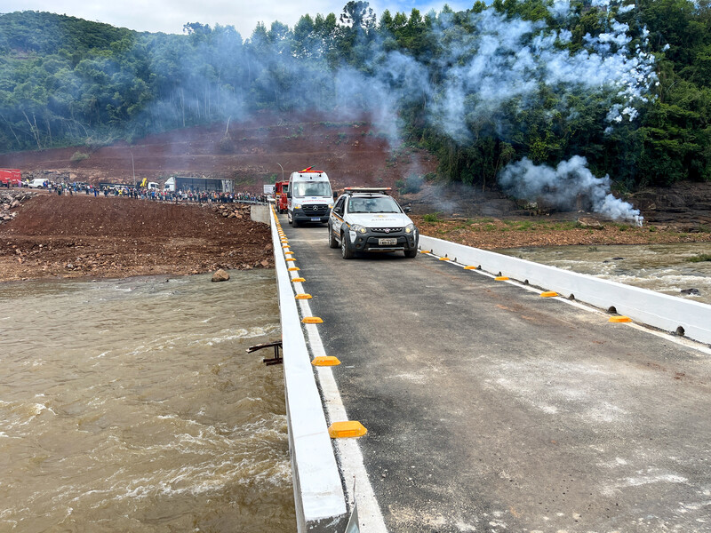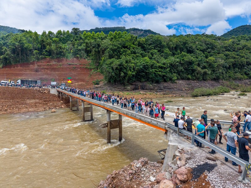 A ocasião contou com pronunciamentos de diversas lideranças que fizeram parte desta conquista, dentre eles o Prefeito Ivelton Mateus Zardo. O protocolo finalizou com a bênção do nosso Pároco Padre Gilberto Lazzarotto e culminou com a travessia do público presente sobre a ponte.