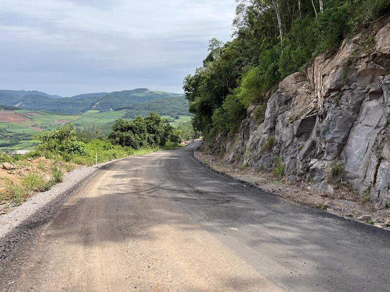 A execução dos trabalhos ocorre em dois trechos que foram danificados pelas chuvas de maio e em aproximadamente 1,5 km que foram conquistados pela Administração Municipal. A empresa Concresul é a responsável pela realização da obra.