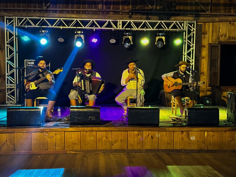 No palco, os músicos do Projeto Taureando conduziram o público a um baile vibrante. Entre milongas, vaneiras e composições autorais, o grupo mostrou domínio de palco e paixão pela arte nativista, transformando o galpão em um grande espaço de celebração à tradição gaúcha.
