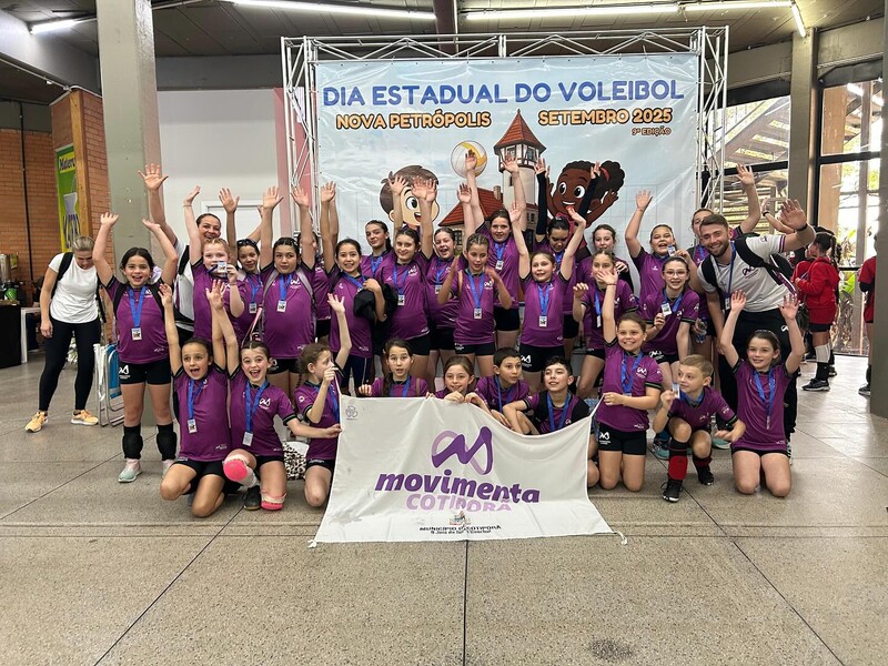 Nos dias 27 e 28 de setembro, Nova Petrópolis realizou a 9ª edição do Dia Estadual do Voleibol, reunindo cerca de 1.500 crianças e jovens. Cotiporã esteve presente com as turmas do Projeto Movimenta Cotiporã, acompanhadas pelos professores Mikael Bortoncello e Naiara Dall’Ago.