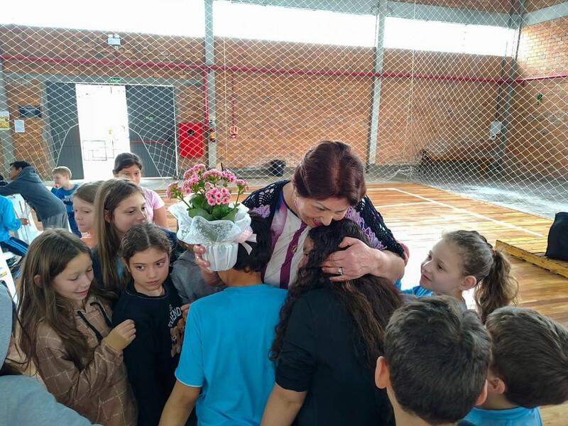 Nos dias 1 e 2 de outubro, a patrona da Feira do Livro de Cotiporã, Roseli Maria Bósio Scarton, esteve nas duas escolas municipais, compartilhando com os estudantes um pouco de sua trajetória e de sua arte.