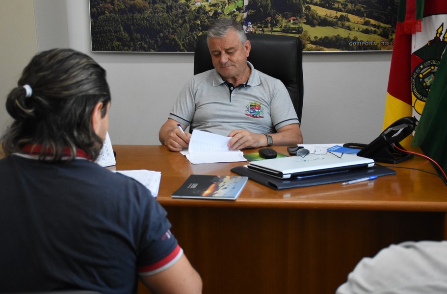 Na tarde de hoje, 24 de janeiro, o Prefeito Municipal José Carlos Breda recebeu em seu gabinete o Engenheiro da Caixa Econômica Federal, Carlos Rodrigo Pinheiro David, para assinatura do convênio que transfere 285 mil reais para Cotiporã, provenientes de emenda parlamentar do Deputado Federal Nereu Crispim. O valor será aplicado na pavimentação de 600 metros da estrada que liga Cotiporã a Dois Lajeados, trecho próximo ao salão da Comunidade de São Valetim, dando continuidade a obra de pavimentação de 300 metros que já iniciou no local.