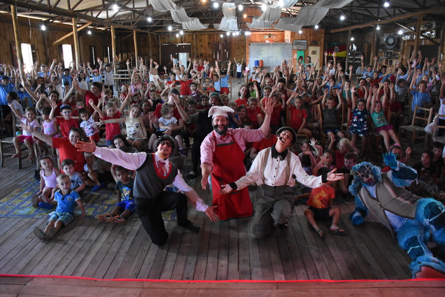Já os alunos do turno da tarde da Escola Caminhos do Saber e Escola Amor e Carinho divertiram-se com apresentação teatral “O incrível caso do sumiço das letras” apresentado pelo Grupo UEBA – Produtos Notáveis, de Caxias do Sul.