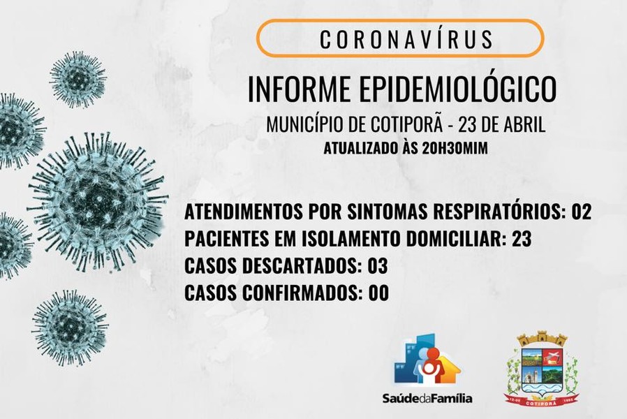 Com dois novos atendimentos registrados no dia de hoje e duas altas concedidas, 23 famílias seguem em isolamento domiciliar no município.