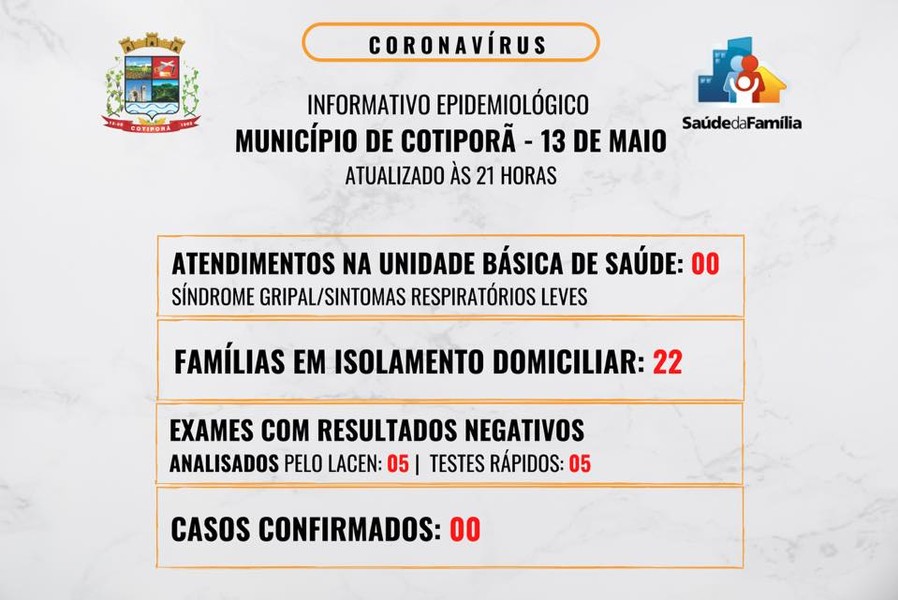 Já no dia de hoje, nenhum atendimento foi registrado e com 4 altas concedidas, 22 famílias realizam o isolamento domiciliar em Cotiporã.