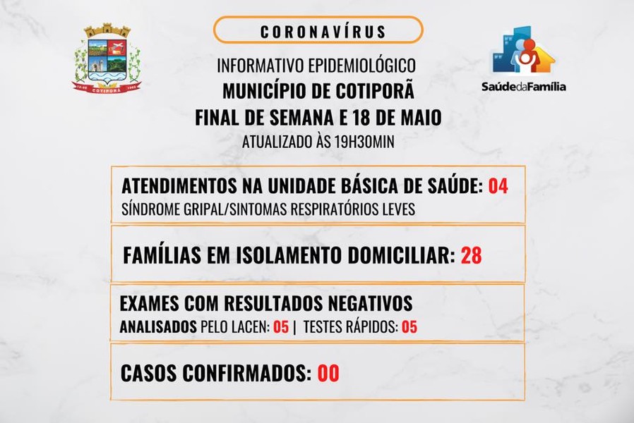 - 28 famílias realizam atualmente o isolamento domiciliar.