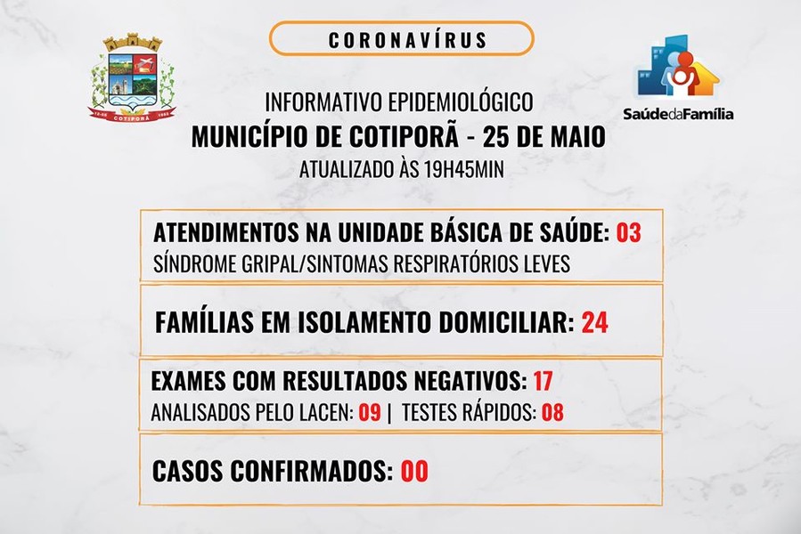 No dia de hoje (25), 3 atendimentos por sintomas respiratórios leves foram registrados na Unidade Básica de Cotiporã e seis altas foram concedidas para pacientes em isolamento domiciliar.