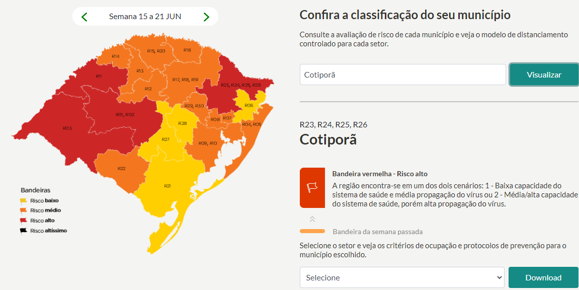 Após avaliação, o governo do Estado, determinou que os 49 municípios da região covid de Caxias do Sul permanecerão classificados como bandeira vermelha, pelo menos até a próxima segunda-feira (22).