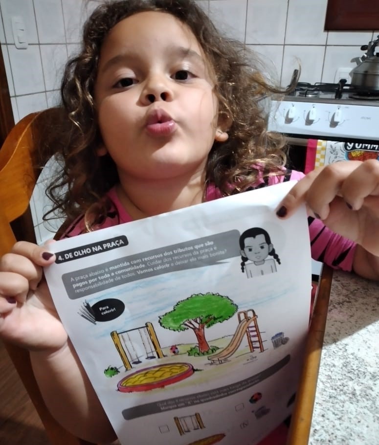 No mês de junho, as atividades entregues aos alunos das turmas da Pré-Escola A e B da Escola de Educação Infantil Amor e Carinho, contaram com exercícios de Educação Fiscal, organizados pela Secretaria Municipal da Fazenda.