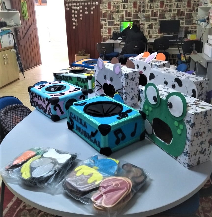 Para a confecção dos mesmos, os profissionais utilizaram materiais alternativos disponíveis na escola.