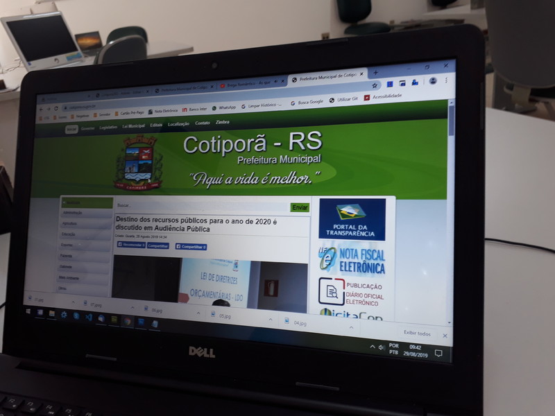 Pelo segundo ano consecutivo, o município de Cotiporã atendeu 100% dos itens analisados pelo Tribunal de Contas do Estado (TCE-RS), referente à transparência dos portais da internet da Prefeitura Municipal e Câmara de Vereadores.