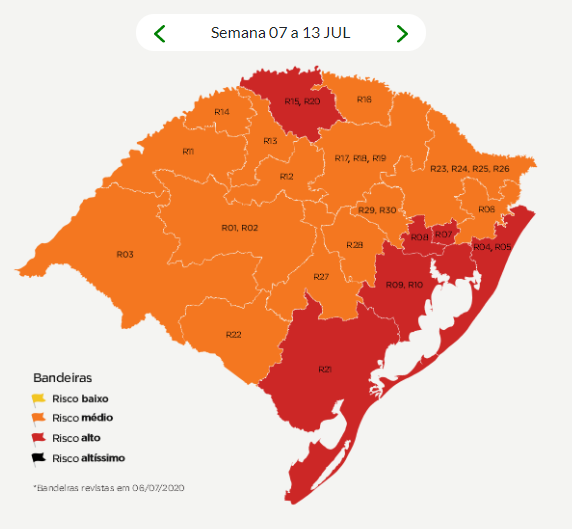 Anúncio foi divulgado pelo Governo do Rio Grande do Sul na tarde de ontem (06), ressaltando que um dos motivos que garantiram o retorno para a cor laranja, foi o número de leitos em UTI disponíveis na região.