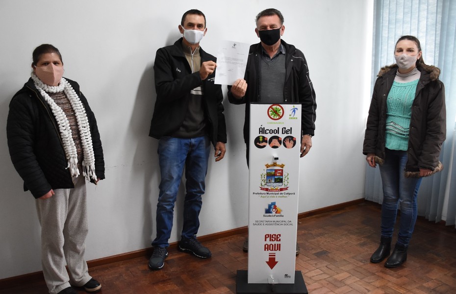 Na tarde de hoje (12), o Vice-Prefeito Ivaldo Wearich recebeu o Presidente da Liga Cotiporanense de Esportes, Ivo Pitol, o qual esteve realizando a doação de quatro dispensers de álcool em gel para serem utilizados pela Administração em pontos de maior fluxo de pessoas no município.