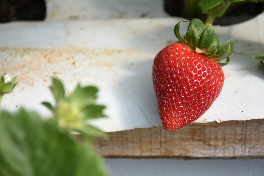 Os morangos são produzidos no sistema semi-hidropônico, ou seja, as mudas são plantadas em substrato inerte e toda adubação e água fornecida à planta é através de gotejamento. A família optou por não utilizar agrotóxicos para controle de pragas e doenças, utilizando produtos que são registrados como fertilizantes foliares.