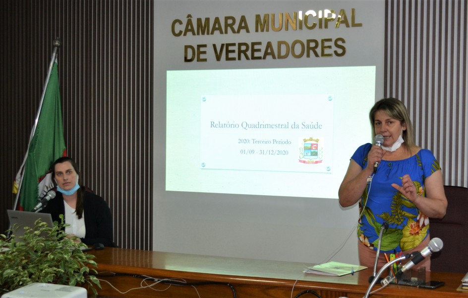 O Quadrimestral da Saúde foi apresentado pela Secretária de Saúde e Assistência Social, Rozeli Frizon, e a Coordenadora de Saúde, Aricele De Villa, que explanaram os números referentes às consultas, exames, fornecimento de medicamentos, visitas domiciliares e viagens realizadas pela Secretaria, no período de setembro a dezembro de 2020. Ainda, foram apresentados os números referentes à pandemia da Covid-19, estrutura física do setor e especialidades ofertadas na Unidade Básica de Saúde.