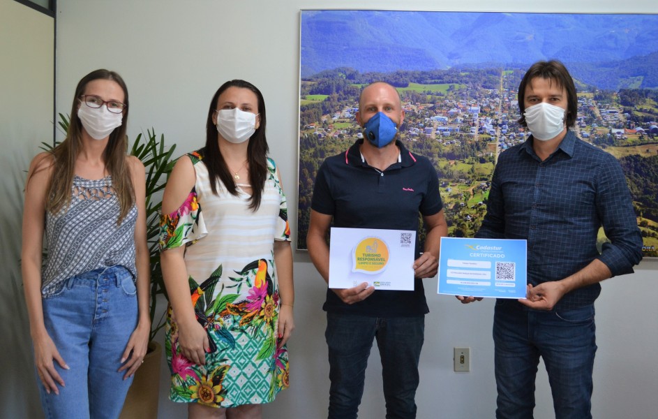 O Prefeito Municipal, Ivelton Zardo, Vice-Prefeita, Lenita Tomazi, juntamente com a Secretária de Turismo e Cultura, Patrícia Gabriel, aproveitaram a ocasião para registrar a entrega do CADASTUR – Cadastro junto ao Ministério do Turismo e do Selo de Turismo Responsável ao empreendimento, o qual é o 1º do município a possuir o Selo.