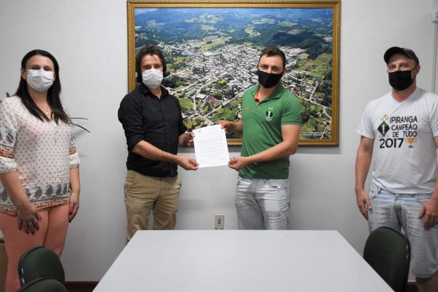 Na sexta-feira, dia 19, o Prefeito Ivelton e a Vice-Prefeita Lenita receberam o Presidente do Esporte Clube Ipiranga, Sidnei Paludo, e o Secretário da entidade, Jones Tomazi, para assinar o Termo de Permissão de Uso da Sede Esportiva pelo prazo de 48 meses, podendo ser renovado por igual e sucessivo período, a critério da Administração Municipal.