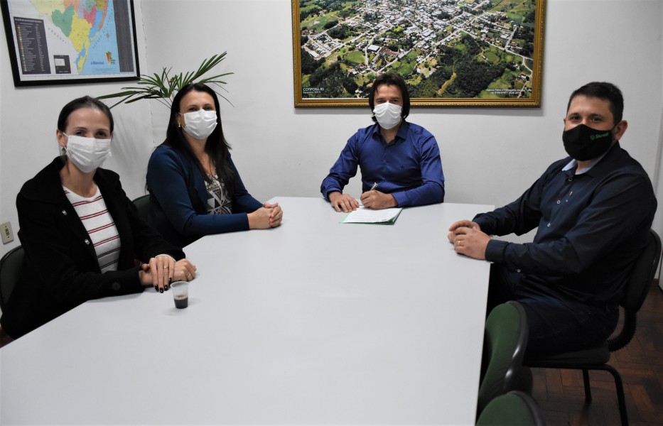 Na tarde de ontem (30), o Prefeito Municipal, Ivelton Mateus Zardo, Vice-Prefeita, Lenita Zanovello Tomazi e a Secretária de Turismo e Cultura, Patrícia Gabriel, receberam o Gerente da Cooperativa Sicredi, de Cotiporã, Bernardo Elias Pitol, para assinatura da renovação do Termo de Cooperação do Programa, por mais dois anos.